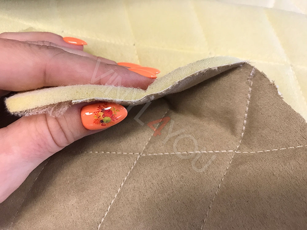 Алькантара стеганая бежевая Ромб с бежевой строчкой