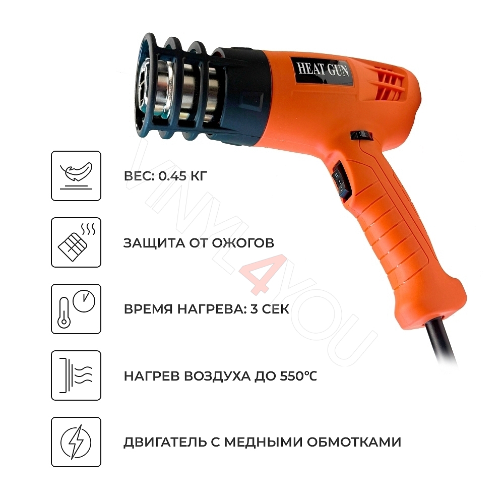 Профессиональный термофен для оклейки и тонировки (Orange)